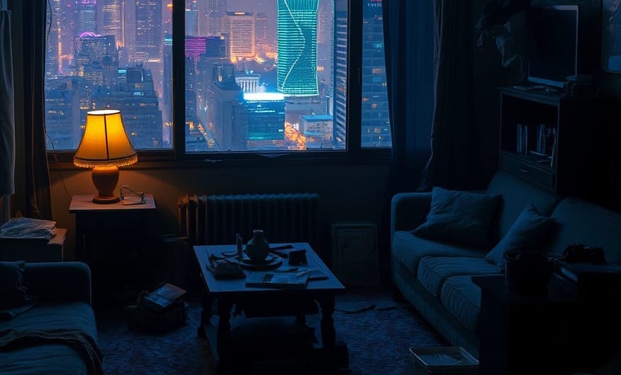 “Hey babe.” The man’s voice was low, flat, and lethargic as he flicked on a light and took off his jacket.